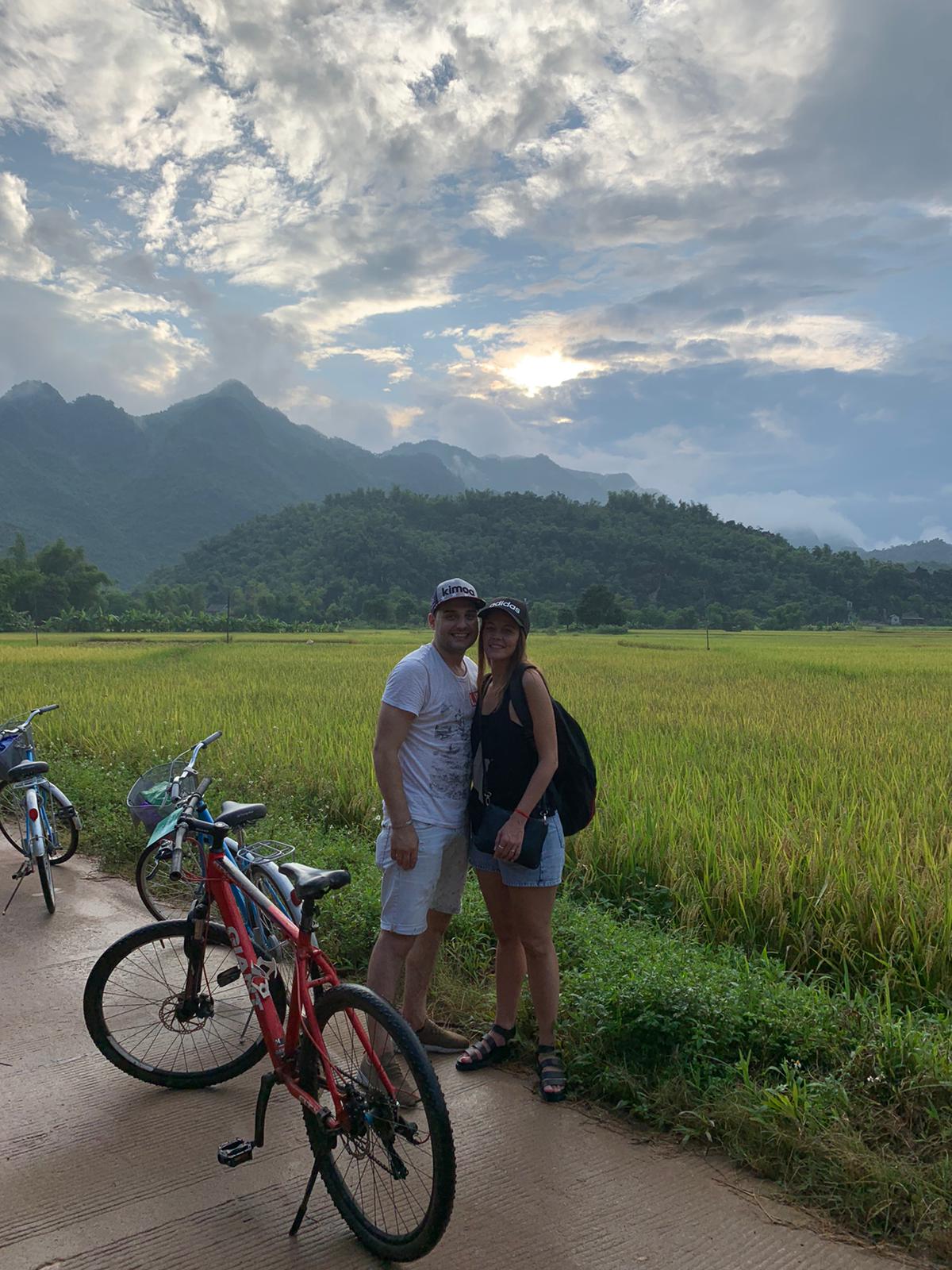 Llegamos, dejamos las maletas y nos fuimos a hacer una ruta en bici recorriendo campos de arroz y pueblecitos. Cada uno de ellos parece que está aislado, sin carreteras, solo con caminos de tierra y mpos pero todos con sus pequeñas tiendas de artesanía, comida o ropa. Lo que más nos sorprendió de todos los negocios que había eran las tiendas de karaoke. Había muchísimas. Después nos dimos cuenta del por qué y es que en Vietnam ... ¡Son fanáticos del karaoke!