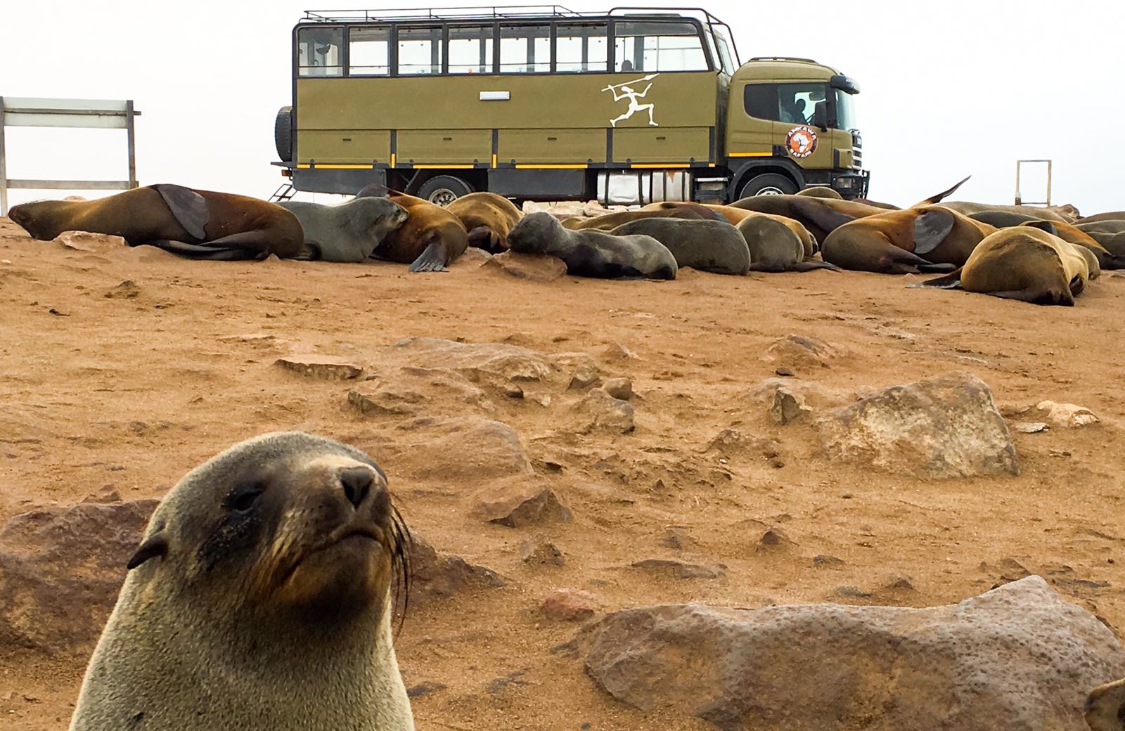 En pleno desierto de Damaraland visitaremos los misteriosos petroglifos en las rocas de Twyfelfontein, un bosque petrificado y encontraremos la mítica Wellwischia Mirabilis, una planta realmente prehistórica . En Cape Cross encontraremos la mayor colonia de lobos marinos de toda África, un espectáculo de la naturaleza que congrega a miles de estos animales en la costa del océano atlántico. La mítica costa de los esqueletos se irá abriendo camino ante nosotros descubriéndonos barcos atrapados en la playa desde hace demasiado tiempo, y con suerte, algún esqueleto de elefante del desierto.