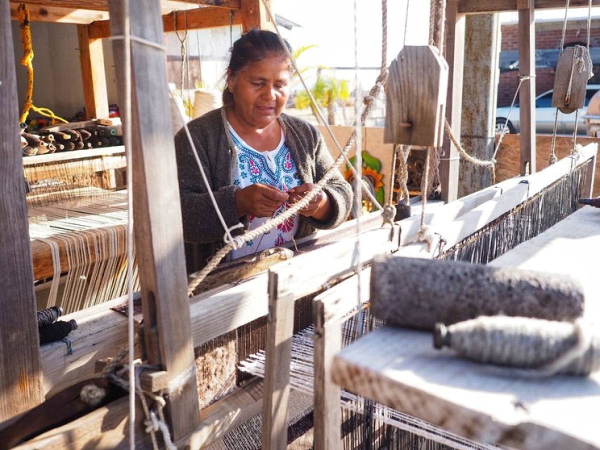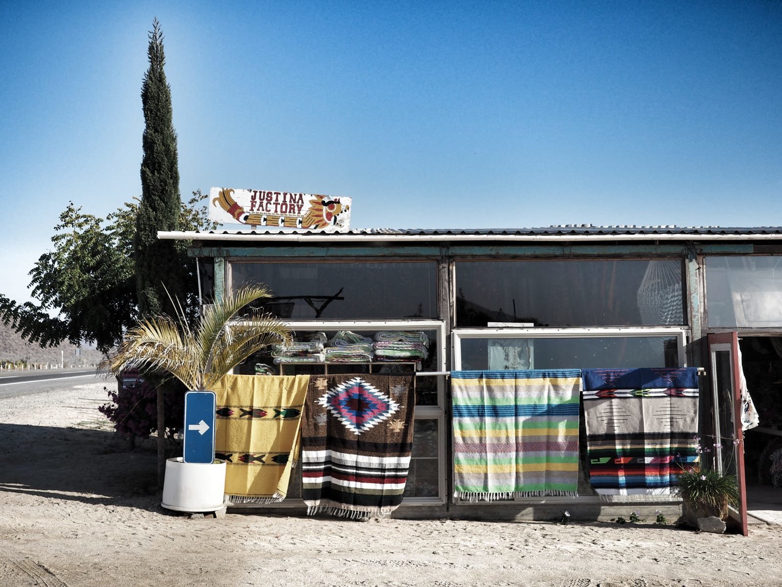Salió Justina a saludarnos y fuimos caminando y hablando hacia la tienda. En la parte de atrás había un pequeño porche adornado con cerámicas y dos telares. Ambos los había construido con sus manos Margarito, el padre de Justina. De eso hacía ya muchos años, cuando su madre y él tenían una pequeña tienda en Todos Santos donde vendían objetos de artesanía puramente mexicana. Comenzó a llegar el turismo y la gente montaba tiendas como la suya para poder vivir de alguna manera.