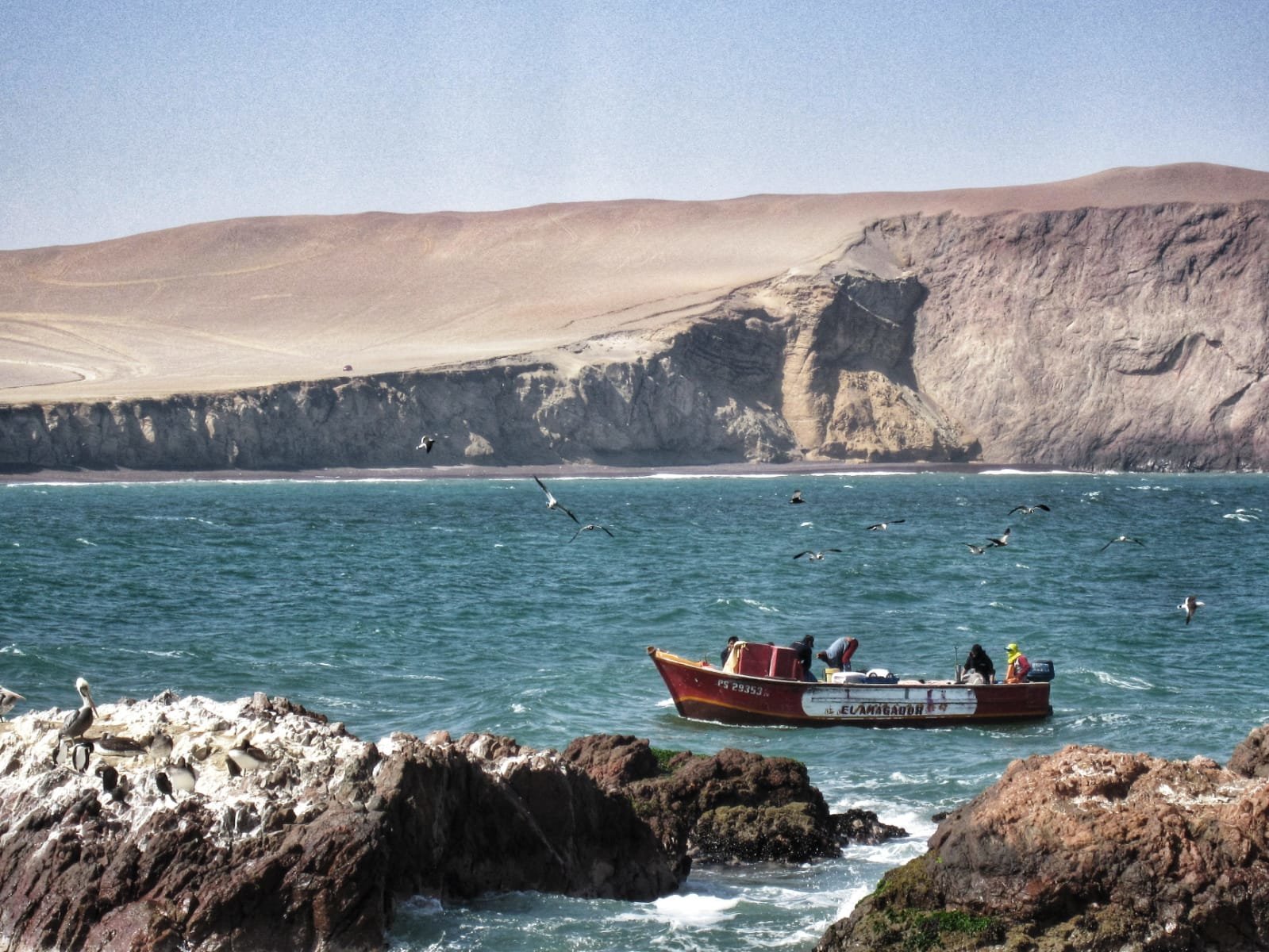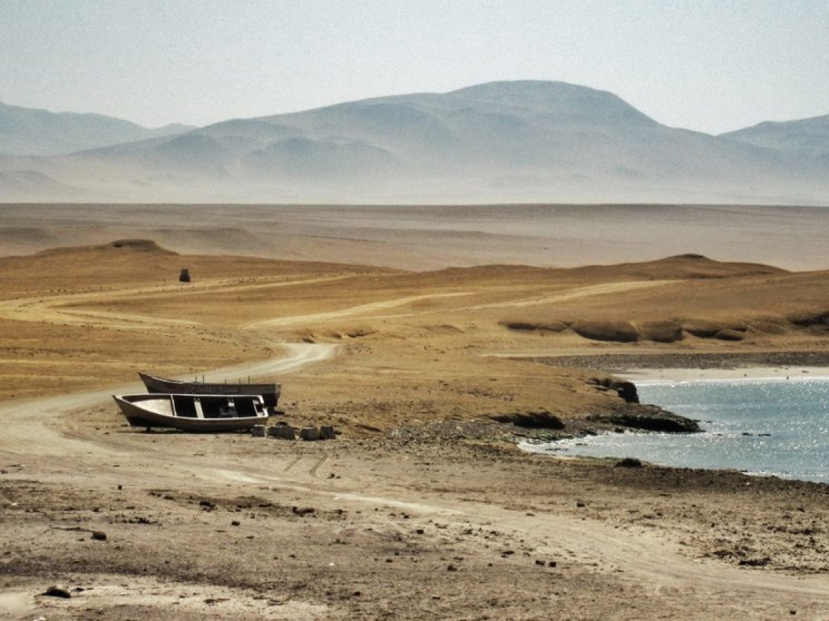 Este pequeño fin del mundo es la reserva de Paracas, a unos kilómetros de Pisco, y resulta un lugar huérfano del tiempo. Han pasado los años de largo, todos los días, todos los vientos. El sol brilla implacable. Se ha reunido aquí la arena, el cadáver perdido de algún lobo marino y una nube de aves. Mantiene un embarcadero artesanal y lo habitan algunos pescadores que fuman al atardecer cuando vuelven del mar. El agua les trae bonito, cabrilla, cabinza, pejerrey y jurel además de erizos, choros, lapas, chanque y pulpo. Es reconfortante saber que existen aún lugares así.