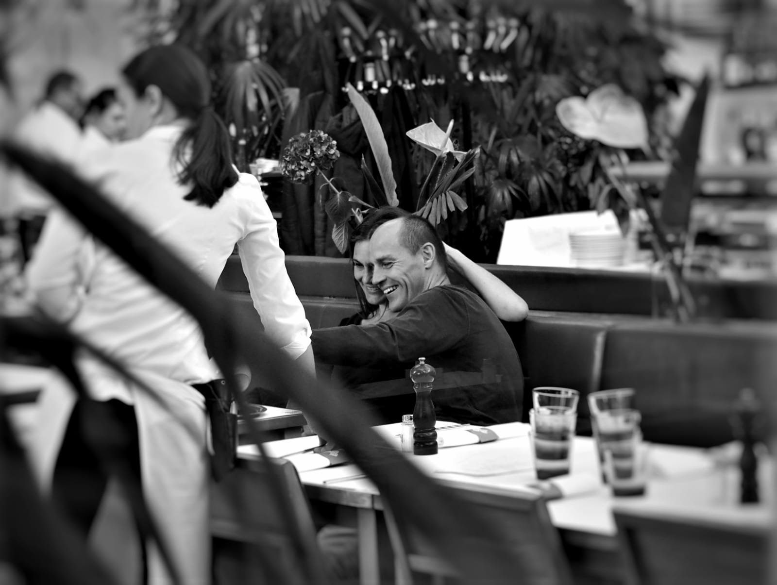 Verán las plantas rodeando la escena, una camarera que coloca los objetos de la mesa de al lado, otros camareros al fondo y sillas vacías, sí. Y verán el amor como yo lo vi: sencillo, auténtico y volátil. Sin saber que están siendo retratados y que esa imagen va a viajar conmigo hasta ustedes. Y saben, sentí envidia. Pero no de ella. En realidad yo quería ser él, porque el modo en que la mujer le miraba era tan emocionante y vívido que me transportó a otros momentos que una vez fueron míos y sólo míos.