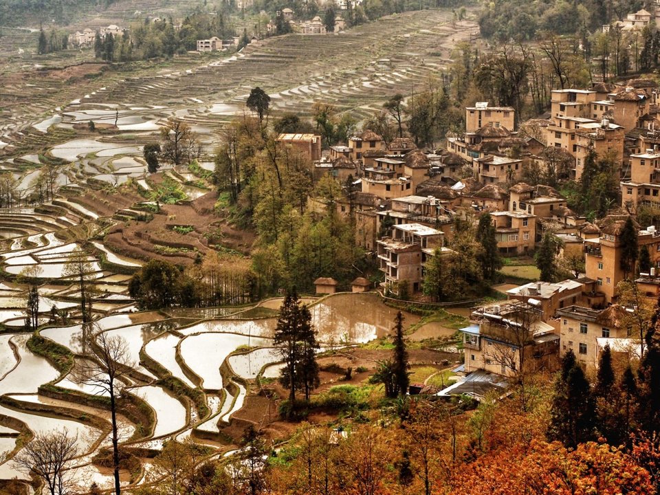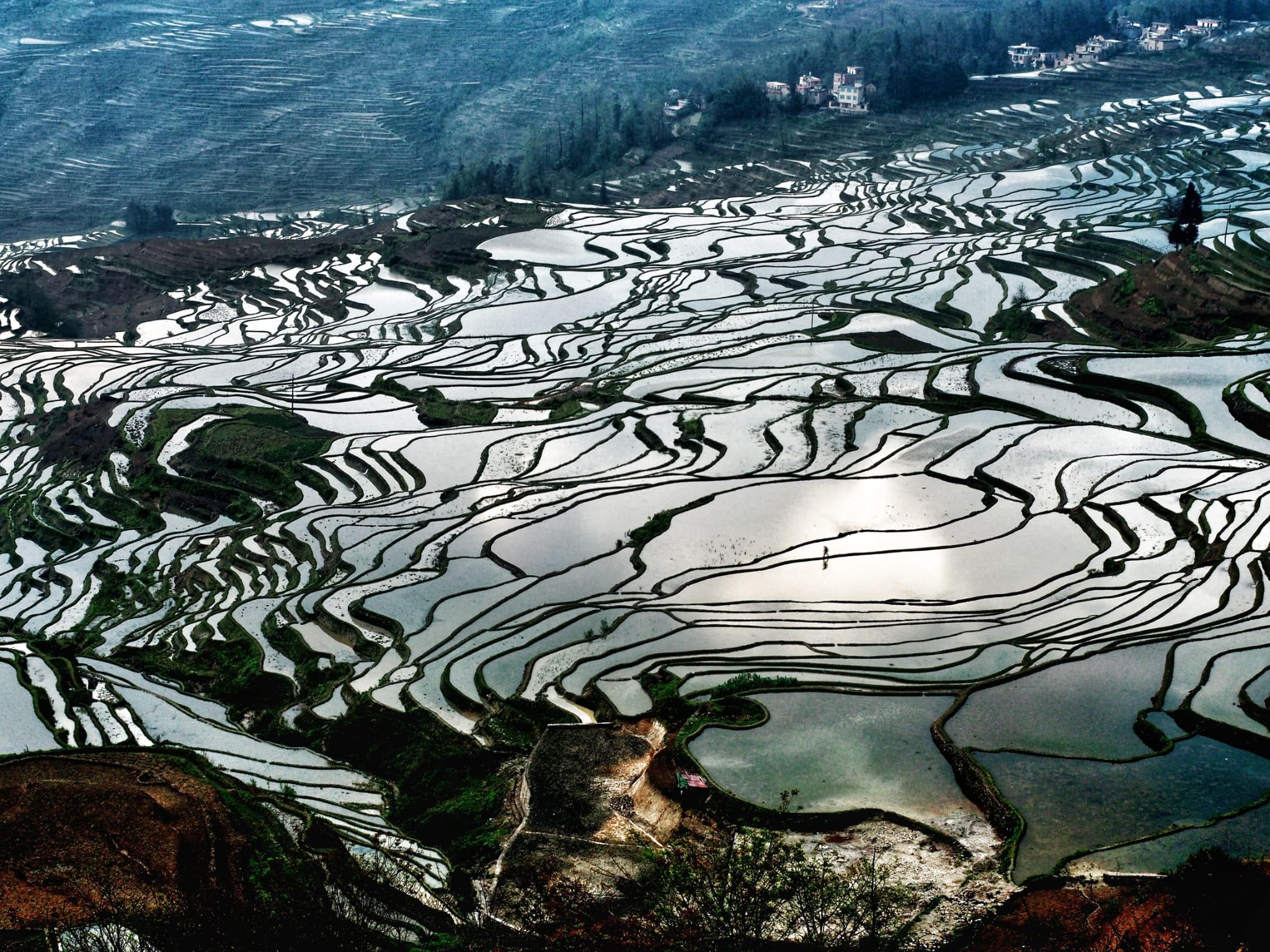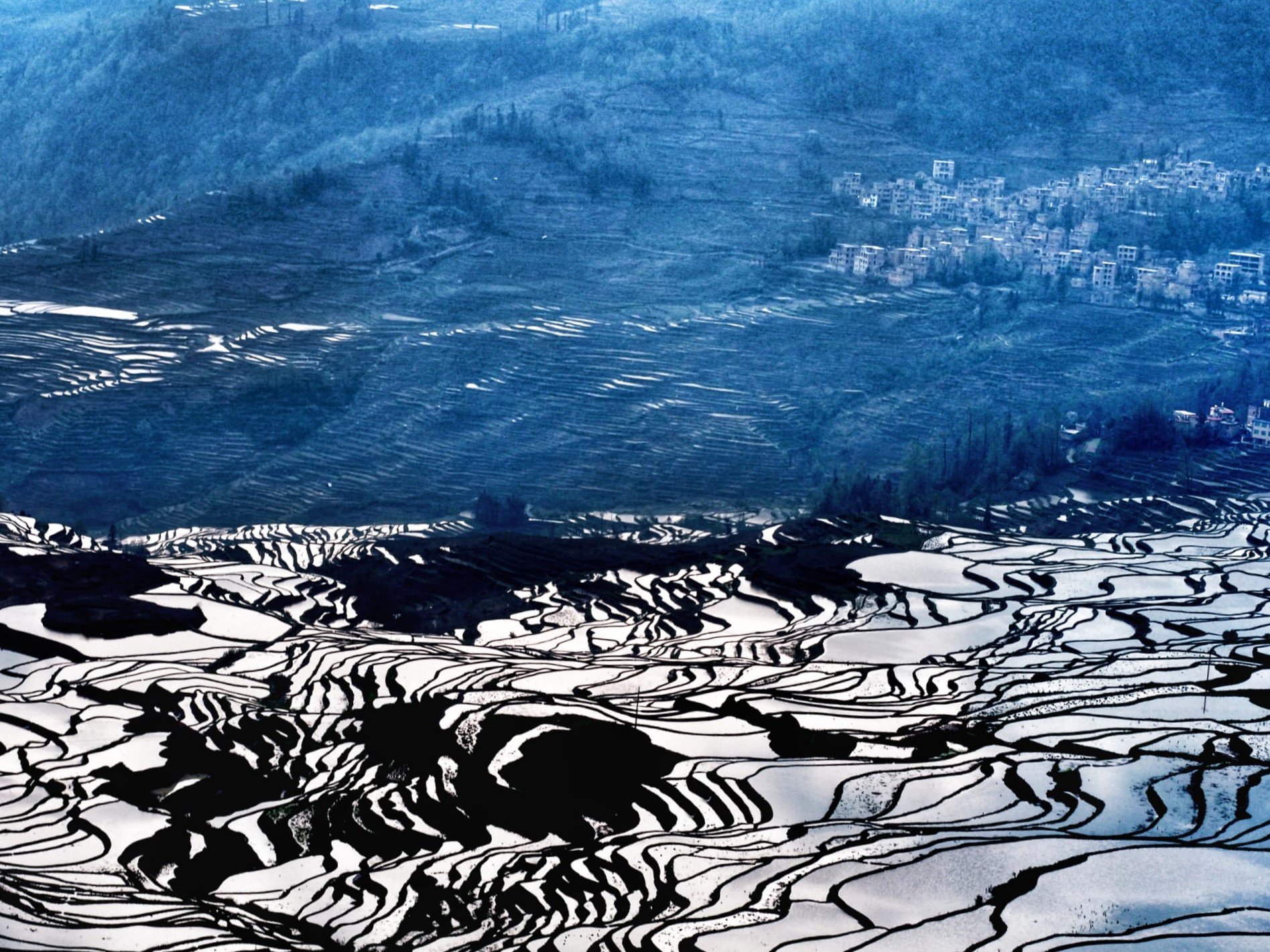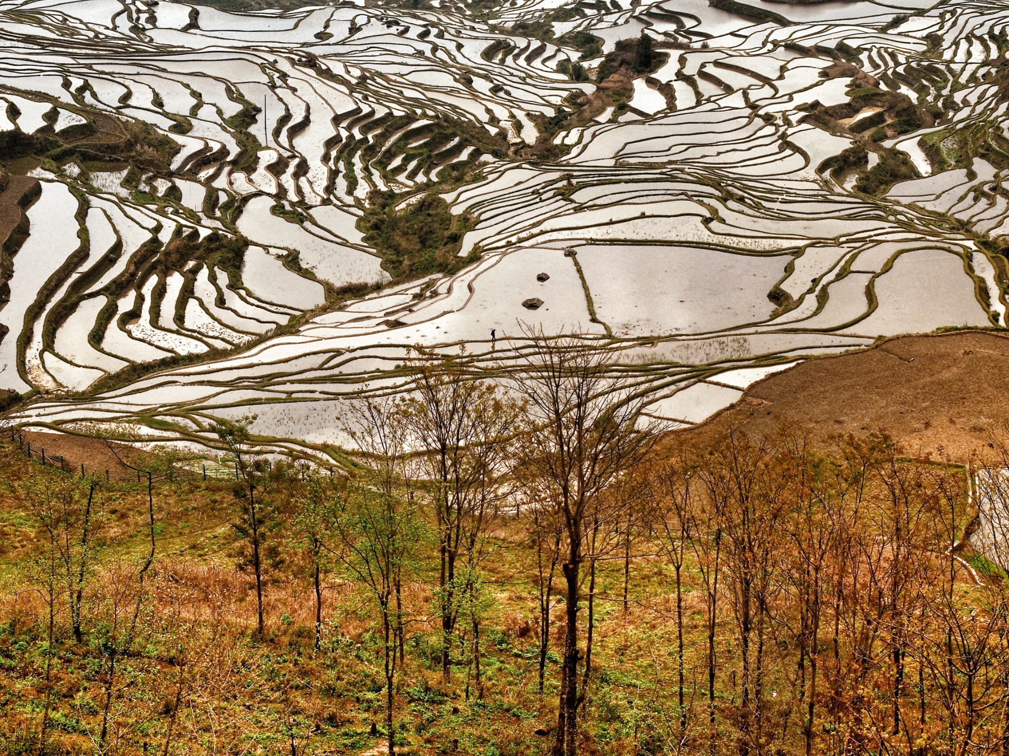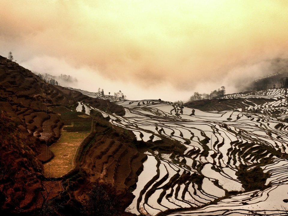 Fueron los hani –pronúnciese jani-, un pueblo llegado hace más de 1300 años a las montañas Ailao del sur de Yunnan, quienes crearon una de las grandes maravillas de ese inmenso país que es China. Desde que se asentaron en este territorio tuvieron que adecuar la orografía a sus necesidades para el cultivo. Fue así como poco a poco construyeron los bancales en las laderas para hacer el terreno cultivable. También habitan aquí las etnias yi y lahu. Años y años de labor paciente dieron como resultado más de 24.000 hectáreas de terrazas sinuosas e irregulares, hechas todas a mano, que tapizan hoy las laderas de las Ailao.