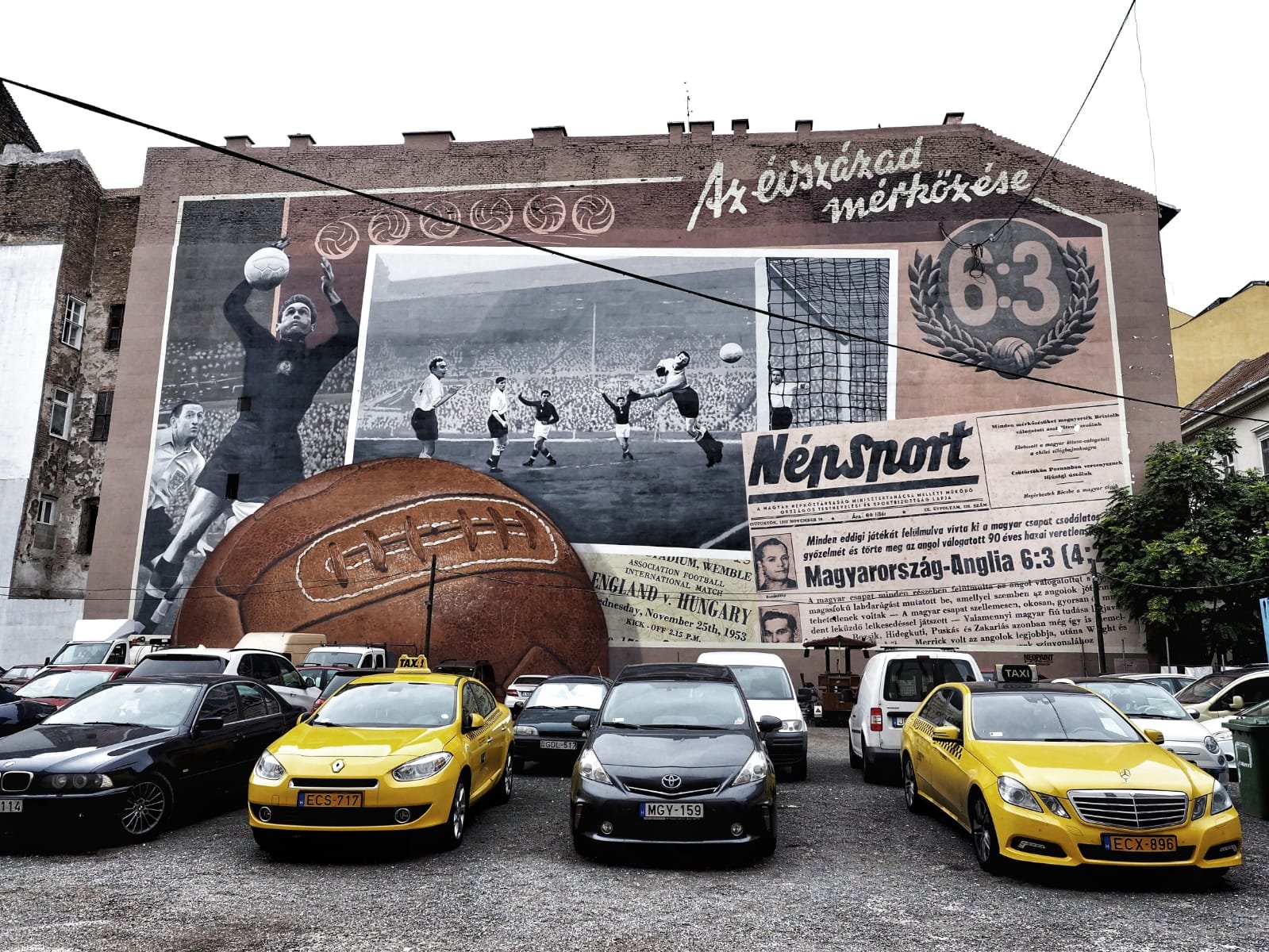El más famoso de los murales de Budapest es el titulado "6:3". Se trata de un homenaje al considerado el partido del siglo, y se refiere a un partido de fútbol celebrado en 1953, cuando Hungría venció a Inglaterra con 6 goles. Fíjense si fue importante este acontecimiento deportivo que el mural es el más grande de todo el país. Incluye una fotografía en blanco y negro del partido, un recorte de periódico de la época haciéndose eco del hito, el dibujo de una pelota de cuero y otro dibujo en detalle del portero en plena y memorable actuación.