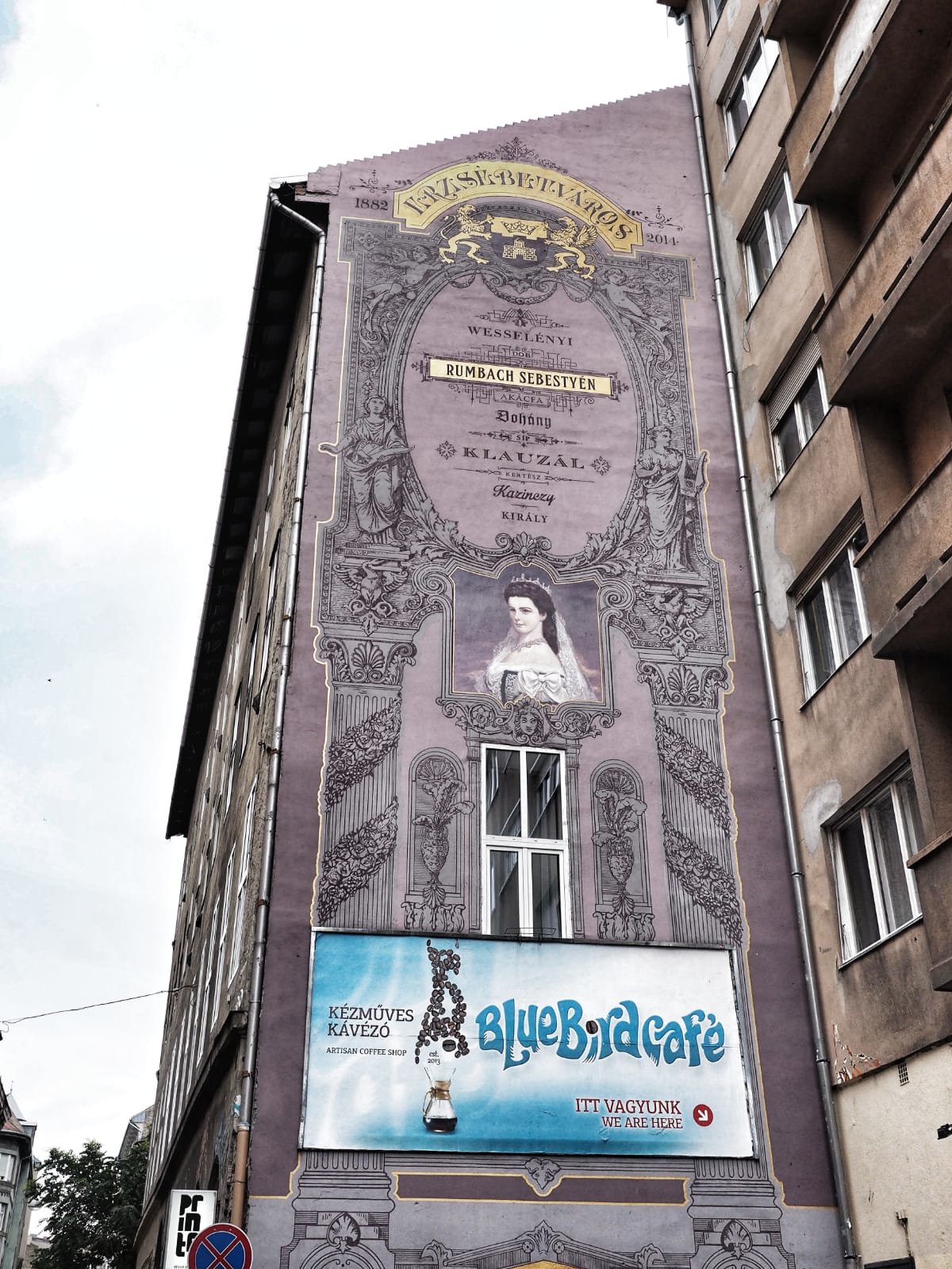 Junto a la sinagoga de la calle Rumbach Sebestyén –visita obligada si van a Budapest-, un retrato de la emperatriz Elisabeth en el lateral de un edificio, da la bienvenida al distrito que recibe su nombre de este miembro de la realeza de los Habsburgo: Erzsébetváros, o Ciudad de Elizabeth. De colores apagados y con más texto, detalles decorativos barrocos y tamaño muy alto pero muy estrecho, este mural es conocido por la población con el cariñoso nombre de "Sissy". Los más melancólicos recordarán sin duda las películas de Sissi emperatriz, interpretada por la actriz Romy Schneider, que relataban la vida de la que fue emperatriz de Austria y Reina de Hungría.