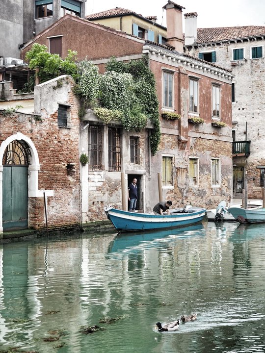 Sus restaurantes son sencillos, con mesas colocadas al borde de los canales, y los patos se acercan a saludar amablemente. La gente charla, toma un aperitivo y brinda, el sol se cuela entre los edificios e ilumina los pequeños talleres casi hundidos en el agua con las barcas amarradas a las escaleras. Hay iglesias escondidas entre flores, a salvo de la marea y los pocos gondoleros que pasan por aquí reman despacio cantando, más bien en un arrullo, "oh sole mio…"